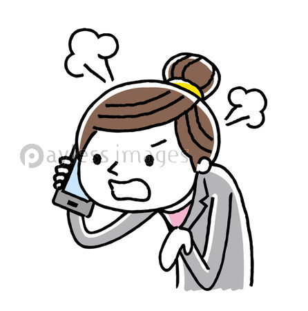 電話 女性 ビジネス 怒る 叱る ストックフォトの定額制ペイレスイメージズ